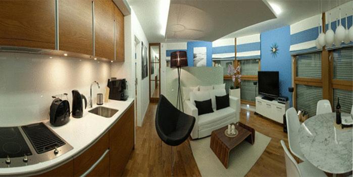 W apartamencie do dyspozycji gości przygotowano sypialnię (1), kuchnię ze standardowym wyposażeniem, takim jak lodówka i zmywarka, a także łazienkę (1) z prysznicem. Wyposażenie obejmuje także telewizor z płaskim ekranem z dostępem do kanałów satelitarnych.