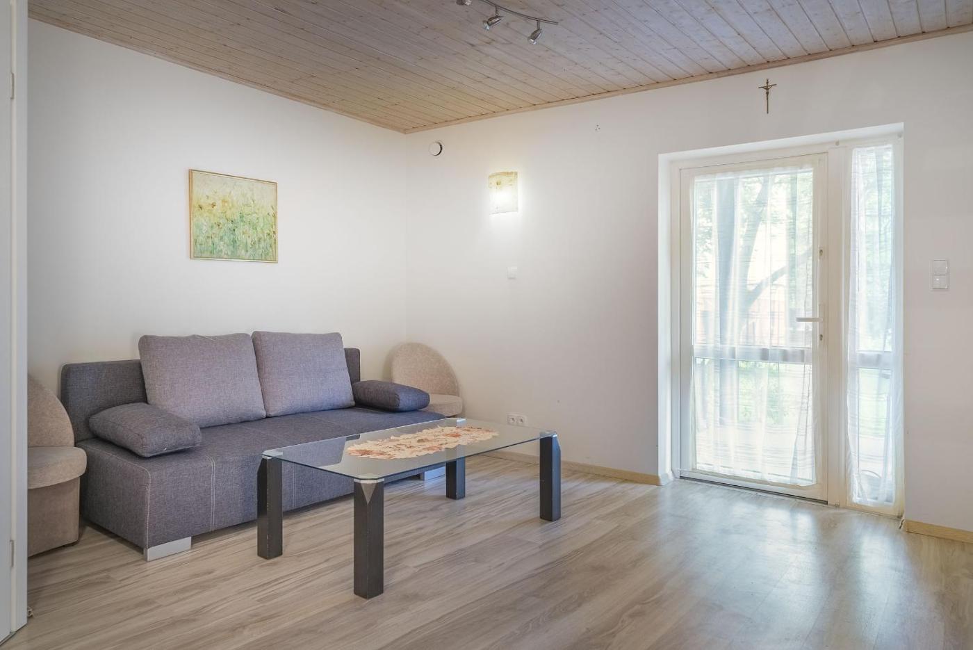 Apartament. Featuring a private entrance, this apartment also consists of 1 living room, 1 separate bedroom and 1 bathroom with a shower. The apartments kitchen, which features a refrigerator and kitchenware, is available for cooking and storing food. The apartment provides a seating area, a dining area, a wardrobe, parquet floors, as well as a flat-screen TV. The unit offers 2 beds. Apartament - 4 osobowy. Powierzchnia pokoju ok.: 35 mkw. ;