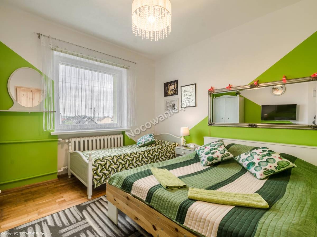 Pokój rodzinny z widokiem na ogród. The family room offers parquet floors, heating, as well as a shared bathroom featuring a hairdryer. The well-equipped kitchen features a stovetop, a refrigerator, kitchenware and a microwave. The family room provides soundproof walls, a dining area, a wardrobe, a flat-screen TV with cable channels, as well as garden views. The unit offers 5 beds. Rodzinny - 6 osobowy. Powierzchnia pokoju ok.: 26 mkw. ;