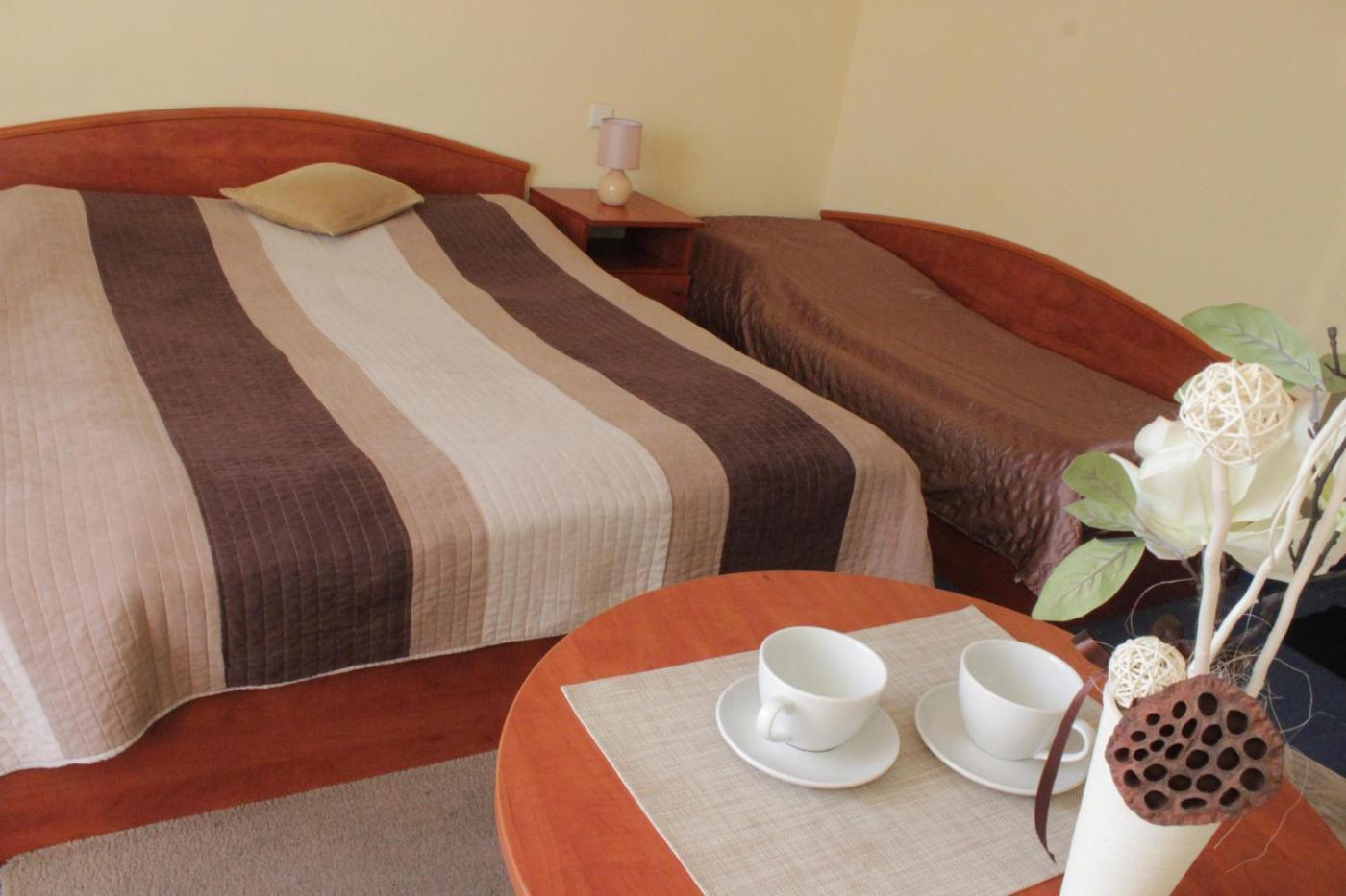 Pokój Czteroosobowy z balkonem. The quadruple room offers a tea and coffee maker, a seating area, a balcony with garden views as well as a private bathroom boasting a walk-in shower. The unit has 2 beds. Pokój Czteroosobowy - 4 osobowy. Powierzchnia pokoju ok.: 20 mkw.